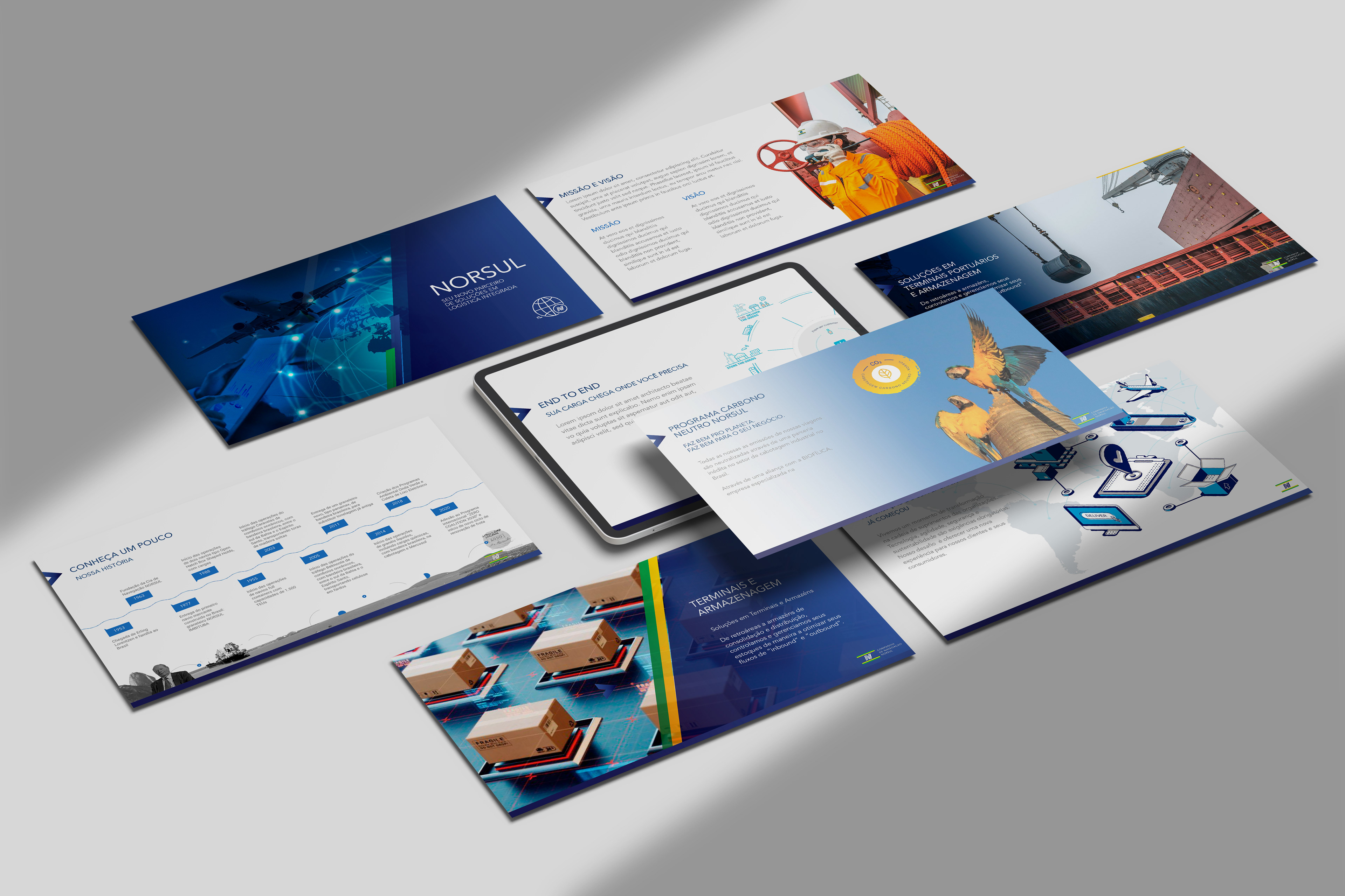 I worked with the Brazilian logistics company Norsul on the development of a comprehensive corporate presentation. The project included creating a clear and strategic visual narrative that showcased the company’s operations, core values, competitive advantages, and logistics solutions. I designed the slides, structured the content to ensure clarity, and refined the visual identity to deliver a cohesive and professional communication piece.