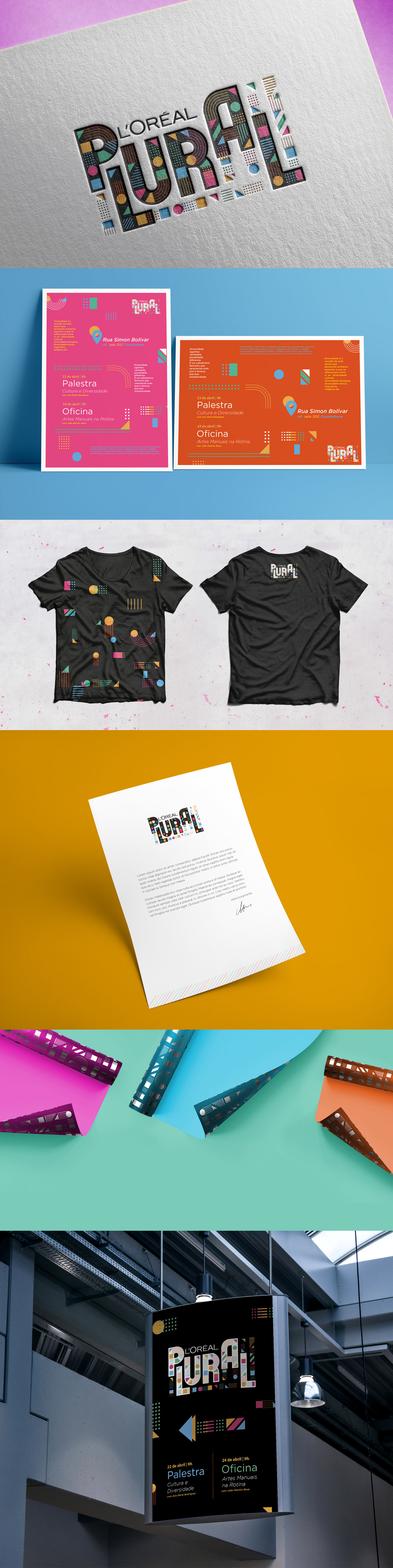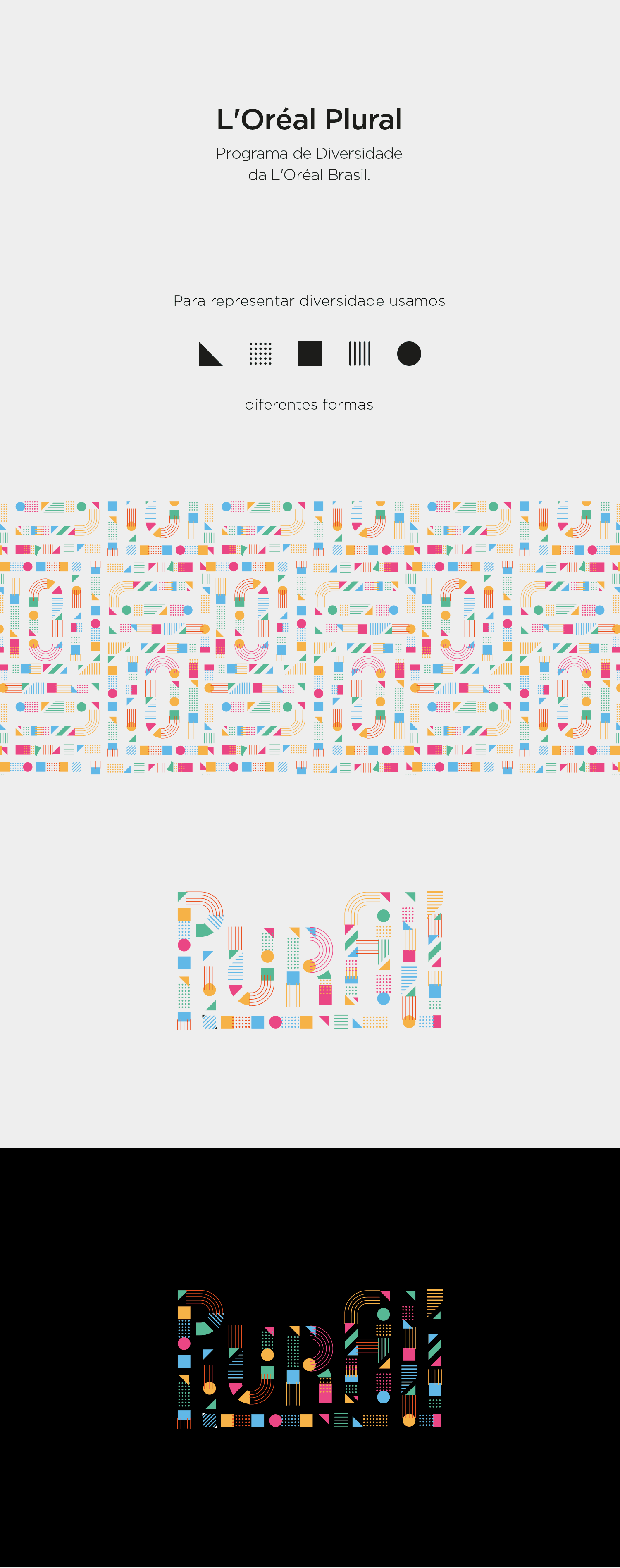 L’Oréal Plural is L’Oréal Brazil’s diversity program. I developed its visual identity based on the concept of inclusion, reflected in the logo through different colors and shapes that come together to form a single word. The program was implemented internally to promote and reinforce the company’s diversity policy.