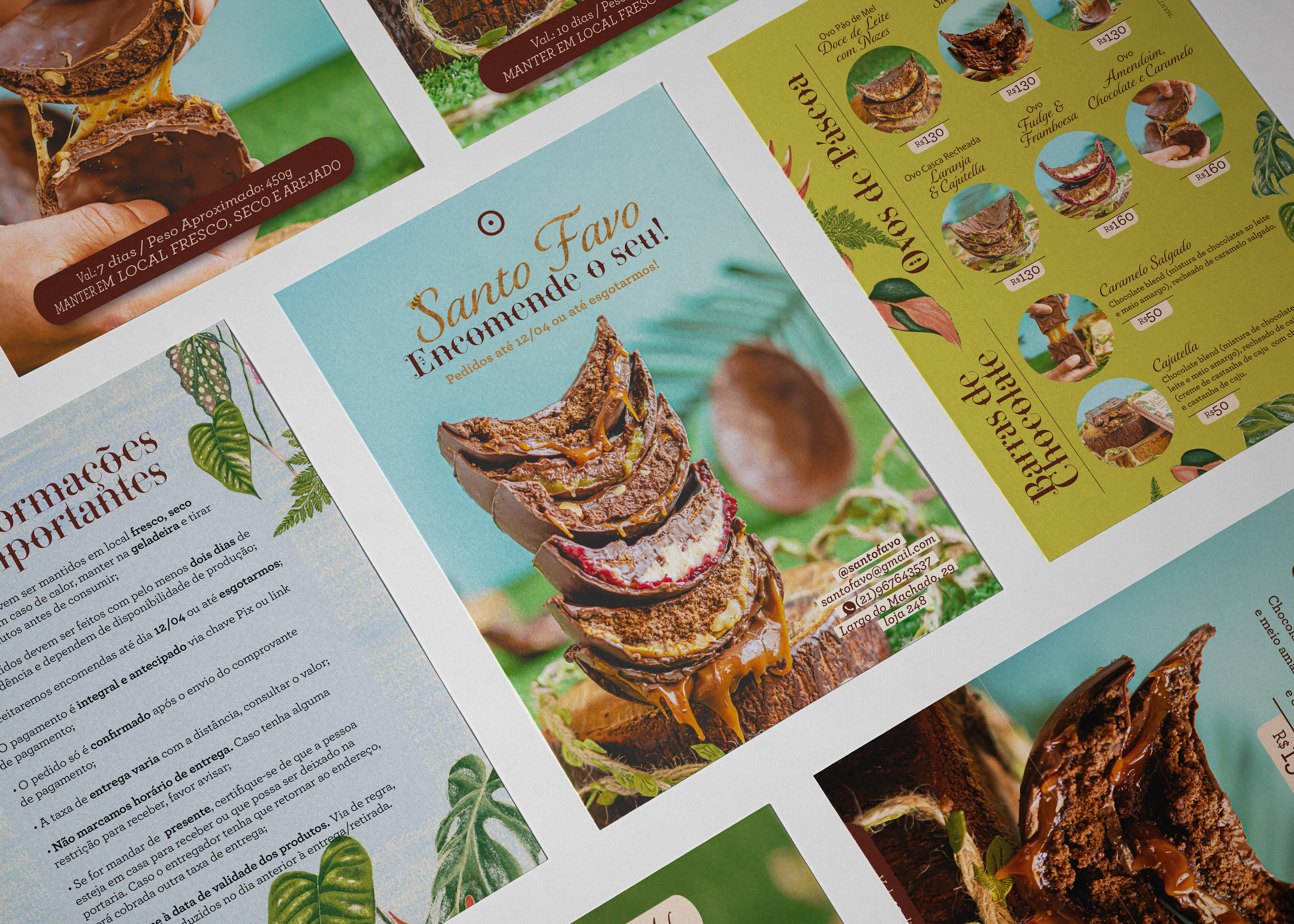 A inspiração para a campanha de Páscoa 2025 da Santo Favo veio dos clássicos livros infantis antigos, mas com um toque de tropicalidade que traduz a essência carioca da marca. Criamos uma floresta Atlântica encantada, onde um coelhinho tenta se fantasiar de abelha. A abordagem criativa tratou todo o projeto como a capa de um livro ilustrado, em que cada elemento foi desenhado digitalmente e só depois desta "capa" pronta se desdobrou em embalagens, materiais promocionais e peças de comunicação.