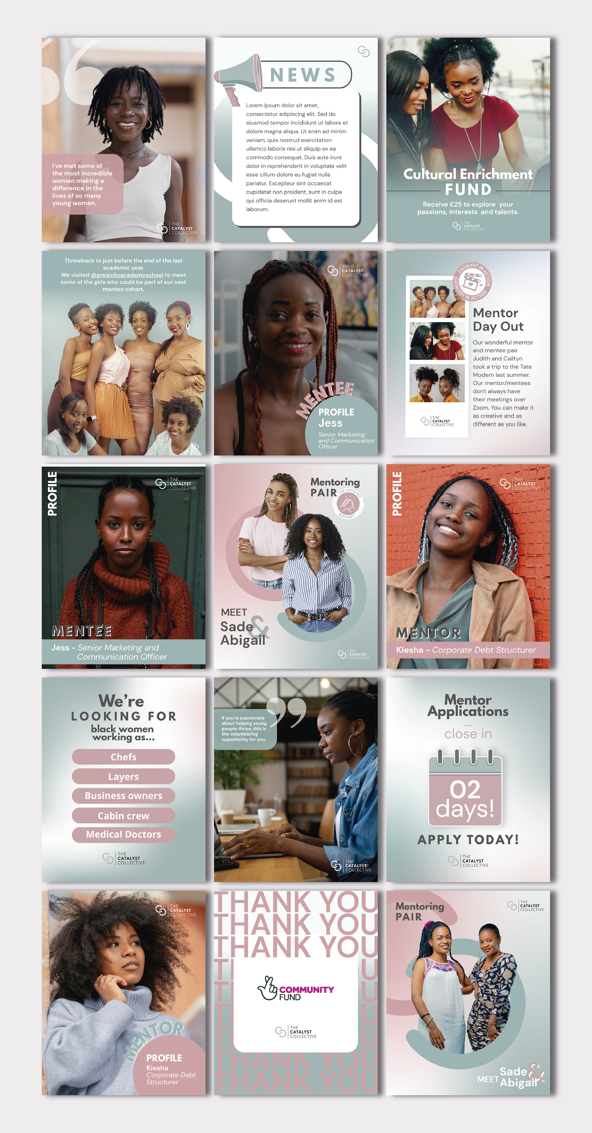 I collaborated with The Catalyst Collective through LinkUp, a UK-based organization that connects skilled volunteers with causes that need professional support. In this project, together with The Catalyst’s internal team, we redesigned the collective’s entire communication and social media positioning. We created easy-to-use, easy-to-maintain templates and produced a manual to guide the team in using these tools in line with the newly proposed guidelines.